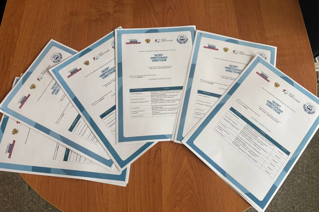 По результатам итогового тестирования в Центр компетенций и карьеры МГИК, которое проводилось в рамках программы «Россия - страна возможностей», выпускники Московского государственного института культуры получили паспорта универсальных и над профессиональных компетенций на церемонии вручения дипломов.